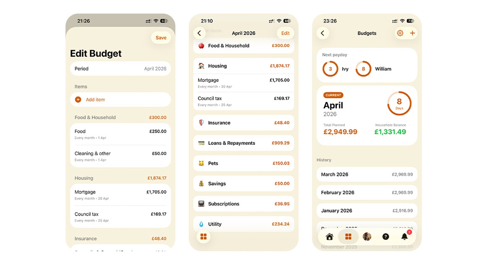 If your household members share bills via a joint account, you can set budget items to be split between everyone. In the Monthly Splits section, you can see exactly who is paying for what and how much they owe.